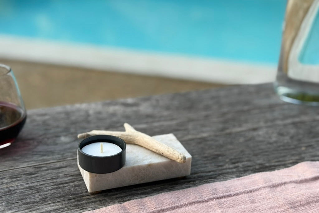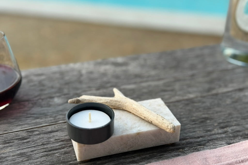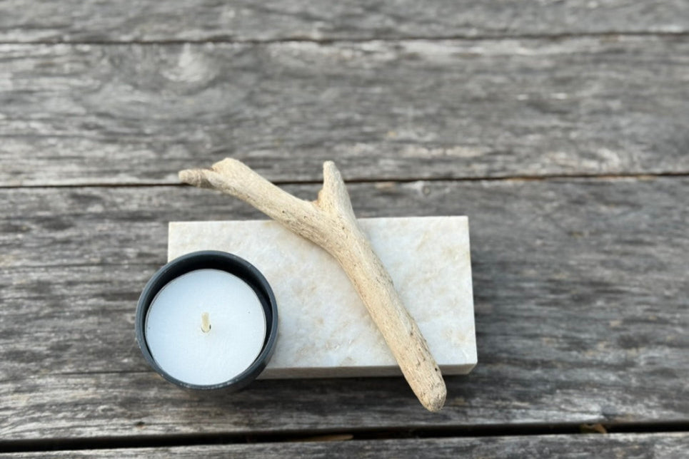 The Isla Vista is our entry level candle sculpture within the Driftwood Series. The Isla Vista is a calming presence to your home or apartment with its thoughtfully designed elements. The sturdy marble slab provides a reliable foundation, while the natural driftwood adds a soothing touch of nature's beauty. The charcoal grey tea candle holder offers a gentle way to create a warm, comforting atmosphere whenever you need it. A wonderful addition to help create your peaceful sanctuary.